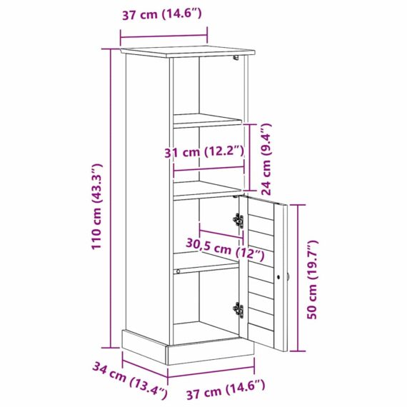 - Gesamtabmessungen: 37 x 34 x 110 cm (B x L x H)