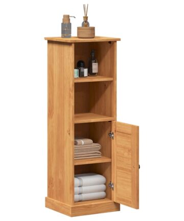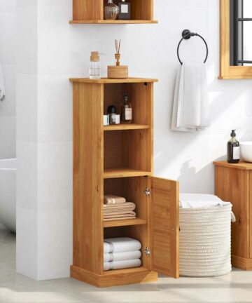 Der Badezimmer-Schrank ist perfekt, um all deine Badezimmerutensilien zu sortieren. Aus massivem Kiefernholz gefertigt, bringt er einen schönen natürlichen Stil in jedes Bad und bietet genug Stauraum, damit alles ordentlich und griffbereit bleibt. Sein Design passt total gut in moderne und traditionelle Badezimmer. Massives Kiefernholz: Dieser Schrank ist aus hochwertigem, massivem Kiefernholz, was ihn stabil und attraktiv macht. Die natürliche Wärme des Holzes gibt deinem Badezimmer ein klassisches Gefühl und sorgt dafür, dass er über Jahre gut aussieht. Vielseitiger Stauraum: Mit mehreren Regalen und Fächern hält dieser Schrank deine Toilettenartikel, Handtücher und anderen Kleinigkeiten organisiert. Das durchdachte Design hilft dir, das rauszuholen, was du brauchst, ohne Chaos zu verursachen. Kompakte Maße: Mit 37 x 34 x 110 cm passt dieser Schrank super in kleine und große Badezimmer. Seine hohe, schmale Form nutzt den vertikalen Raum optimal aus, ohne den Raum zu überladen – perfekt für engere Plätze. Einfacher Aufbau: Mit seinem schlichten, aber eleganten Look fügt sich dieser Schrank in alle Arten von Badezimmerstilen ein, egal ob minimalistisch oder klassisch. Seine natürliche Oberfläche ist eine neutrale Basis, die gut mit verschiedenen Farben und Armaturen harmoniert. Zusammenbau nötig: Den Schrank zusammenzubauen ist easy und braucht nur zwei Personen. Mit ein paar einfachen Werkzeugen und klaren Anleitungen hast du ihn ruckzuck bereit, um dein Bad zu organisieren.