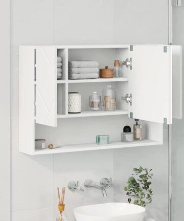 Dieser Holz-Badezimmerspiegel-Schrank ist eine coole und stylische Möglichkeit, deine Badutensilien in den Griff zu bekommen. Das wandmontierte Design sorgt für ein sauberes Flair und ist somit die ideale Wahl für moderne Häuser mit wenig Platz. Mit seiner klaren rechteckigen Form vereint er Funktionalität und zeitgenössischen Stil und bringt ein wenig Raffinesse in dein Badezimmer. Egal, ob du praktische Aufbewahrung oder ein schickes Deko-Stück suchst, dieser Schrank macht deinen Raum wirklich schicker – perfekt für Leute, die Einfachheit und Ordnung schätzen. Materialien: Aus Holzwerkstoff gefertigt, ist dieser Badezimmerspiegel-Schrank robust und behält einen eleganten modernen Look. Er hält viel Feuchtigkeit stand – perfekt für ein Badezimmer. Zudem gibt die subtile Maserung einen Hauch von natürlichem Stil, der zu minimalistischen oder modernen Dekoren passt. Eingeschlossene Komponenten: Mit einem glatten Spiegel und einer flächenbündigen Tür mit Kantengriffen kombiniert dieser Schrank Stil und praktische Nutzung. Der Spiegel liefert eine klare Reflexion für dein Grooming und verschönert die Deko. Die flächenbündige Tür verstaut alles ordentlich, während die Kantengriffe das moderne Feeling unterstreichen. Eigenschaften / Funktion / Design: Das wandmontierte Design spart Platz auf dem Boden. Die starke Konstruktion sorgt für einen stabilen Halt, wenn er sicher an der Wand befestigt ist. Mit seinem klaren, einfachen Look hilft er, Unordnung zu reduzieren und schafft ein offenes, luftiges Ambiente in deinem Zuhause. Empfohlene Verwendung: Perfekt für kleinere Badezimmer, schmiegt sich dieser Schrank eng an die Wand und nutzt den Platz optimal. Er eignet sich super zum Aufbewahren von Toilettenartikeln, Medikamenten und Grooming-Zubehör. Ideal für städtisches Leben, passt er sowohl in private als auch in Gäste-Badezimmer und sorgt für Ordnung im Grooming-Bereich. Pflege & Wartung: Um ihn in Topform zu halten, einfach mit einem feuchten Tuch abwischen, um Staub und Feuchtigkeit zu entfernen. Vermeide aggressive Chemikalien oder raue Materialien, um Schäden zu verhindern. Und um sicherzugehen, dass er frisch aussieht, überprüfe regelmäßig, ob er stabil montiert ist und ziehe bei Bedarf die Befestigungen nach, damit er über die Jahre schick bleibt.