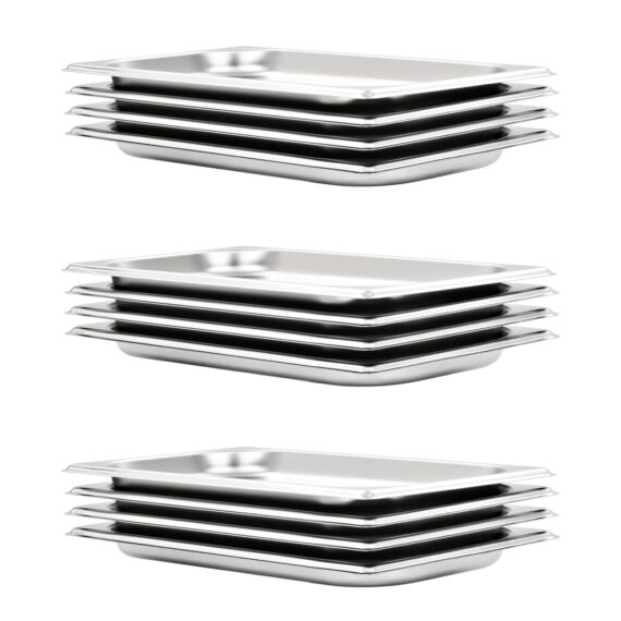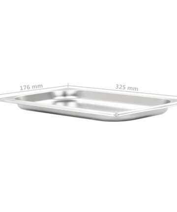 Diese stapelbaren Gastronorm-Behälter sind eine großartige Ergänzung zu Ihrem Küchengeschirr. Aus robustem Edelstahl gefertigt, weist der Gastronorm-Behälter eine solide Konstruktion auf. Dank des strapazierfähigen Materials ist er kratzfest und leicht zu reinigen. Das Bratblech mit Standard-Gastronorm- Abmessungen ermöglicht einen universellen Einsatz und eine Vielzahl von Kombinationen. Folglich passt es perfekt in alle professionelle Küchenschränke. Es eignet sich hervorragend für Bain-Marie, Chafing-Dishes und Salatbars. Das Kochgeschirr ist zudem stapelbar und kann demnach platzsparend verstaut werden. Daher ist sie sehr praktisch und ideal für den Einsatz in Restaurants, Hotels, auf Partys sowie zu Hause geeignet. Lieferung umfasst 12 Kochgeschirre.