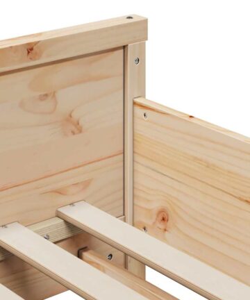 Check mal dieses coole Bettgestell aus! Es kombiniert modernes Design mit praktischen Funktionen und ist perfekt, um jedes Schlafzimmer aufzupeppen. Hergestellt aus massivem Kiefernholz, ist es eine langlebige Wahl für jeden, der ein wichtiges Möbelstück sucht, das auch schick aussieht. Egal, ob es im Kinderzimmer oder im Hauptschlafzimmer steht, das einfache und charmante Design lässt dir viel Freiraum für kreative Bettwäsche und Deko. Hergestellt aus massivem Kiefernholz Das Bettgestell besteht aus robustem Kiefernholz, das bekannt ist für seine Langlebigkeit und natürliche Widerstandsfähigkeit. Es sorgt für einen stabilen und bequemen Schlafplatz und bringt Wärme sowie Stil in dein Zimmer. Stabiler Lattenrost Der Rahmen hat stabile Holz- oder Metalllatten, die deine Matratze perfekt unterstützen. Er ist stark genug für den täglichen Gebrauch und ideal für belebte Schlafzimmer mit aktiven Kindern oder häufigen Übernachtungsgästen. Stylisches Kopfteil Das massive Kiefernholz-Kopfteil bietet praktische Funktionen und einen modernen Look. Es ist perfekt zum Anlehnen beim Lesen oder Handy benutzen vor dem Schlafengehen. Quadratisches Bein-Design Die quadratischen Beine passen super in jedes minimalistische oder moderne Schlafzimmerdesign und geben deinem Raum ein sauberes und elegantes Finish. Sie zeigen die Stabilität des Bettes und geben dir Vertrauen in seine Zuverlässigkeit, ohne den Stil dabei zu verlieren. Aufbau erforderlich Du brauchst einen Schraubendreher und die Anleitung zum Zusammenbauen. Mit ein bisschen Geduld und Einsatz hast du im Handumdrehen ein solides Möbelstück, das dir Komfort und Stil für viele Jahre bietet.