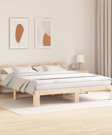 Verpass deinem Schlafzimmer neuen Schwung mit diesem stylischen Bettgestell, das gutes Aussehen und clevere Gestaltung kombiniert. Mit seinem modernen Look dreht sich hier alles um Einfachheit, mit klaren Linien und minimalem Aufwand. Es ist perfekt für moderne Hausbesitzer und ist ein echter Blickfang, der einen gemütlichen Raum schafft, wo Eleganz und Entspannung Hand in Hand gehen. Materialien: Aus massivem Kiefernholz gefertigt, bringt dieses Bettgestell Wärme in jedes Schlafzimmer. Es ist stabil, stylisch und garantierte Langlebigkeit, während es eine solide Grundlage für erholsamen Schlaf bietet. Die exzellente Handwerkskunst sorgt für ein schickes Finish und strahlt erstklassige Qualität aus. Enthaltene Komponenten: Das massive Kiefernholz-Kopfteil gibt dir tollen Halt, während du entspannt liegst. Das Design passt super zum Look des Bettes und sorgt für Ausgewogenheit. Jedes Teil harmoniert miteinander und bietet ein stimmiges Design, das für entspannende Momente gedacht ist. Features / Funktion / Design: Mit seinem modernen Flair zeigen die geraden Linien stilvolle Einfachheit. Das schlanke Profil des Gestells fängt zeitgenössisches Handwerk ein und fügt sich wunderbar in verschiedene Einrichtungsstile ein und spendet einen Hauch von Eleganz. Es ist perfekt für Minimalisten, die schlichte Eleganz lieben. Empfohlene Verwendungen: Dieses Bettgestell ist super für Wohnungen in der Stadt oder im Vorort, da es den Style deines Schlafzimmers ganz easy aufpeppt. Seine großzügige Größe ist ideal für gemütliche Nächte. Über den Look hinaus bietet seine stabile Bauweise einen einladenden Ort für tägliche Entspannung. Pflege & Wartung: Einfach mit einem trockenen Tuch abwischen, um es gut aussehen zu lassen. Diese einfache Wartung bedeutet, dass es mit wenig Aufwand schön bleibt, was es zu einer smarten Investition für einen aufgeräumten, stylischen Raum macht.