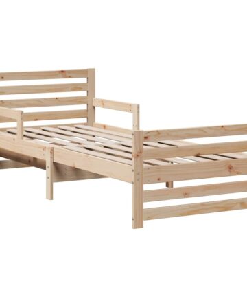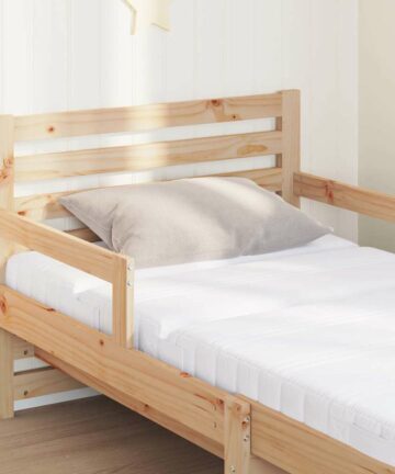 Dieses Holz-Bettgestell hat einen modernen Stil und vereint Einfachheit sowie Praktikabilität. Die klaren Linien und die schlichte Optik passen in jedes Schlafzimmer und bringen einen Hauch von Eleganz in moderne Räume. Hergestellt aus massivem Kiefernholz, ist es robust und bleibt über die Jahre hinweg stabil und stylish. Perfekt für alle, die etwas Schickes und gleichzeitig Nützliches wollen. Massivholz Kiefer Aufbau – Der massive Kiefernholzrahmen macht dieses Bettgestell stark genug für den täglichen Gebrauch. Die warme Kieferfarbe bringt Natur in deinen Raum und sorgt für eine gemütliche Atmosphäre. Robust genug für langanhaltende Nutzung ohne Verschleiß. Kopf- und Fußteil – Wird mit passendem Kopf- und Fußteil geliefert für einen stylishen Look. Beide bestehen aus massivem Kiefernholz und bieten einen komfortablen Hintergrund für deine Bettwäsche. Mittelfeste Komfortmatratze – Die mittelfeste Schaumstoffmatratze bietet dir tollen Komfort und Unterstützung. Sie passt sich deinem Körper gut an und nimmt den Druck in allen Schlafpositionen. Super für alle, die eine bequeme Unterlage brauchen. Quadratische Beine für Stabilität – Die stabilen Kieferbeine geben Halt und sorgen dafür, dass alles sicher steht. Dieser moderne Touch verbessert nicht nur die Stabilität, sondern passt auch super zum klaren Design des Rahmens. Einfache Pflege – Halte es sauber mit einem schnellen Wisch durch ein trockenes Tuch. Regelmäßige Pflege hilft, das Holz über Jahre hinweg gut aussehen zu lassen – ganz ohne großen Aufwand.