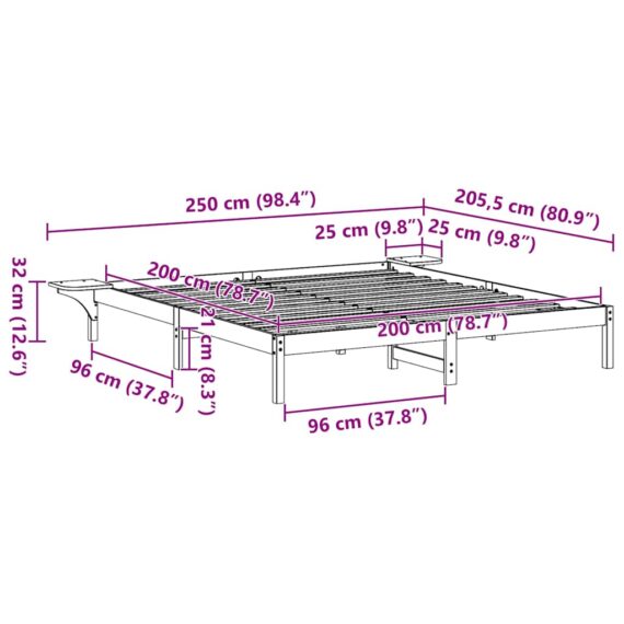 - Gesamtabmessungen: 250 x 205.5 x 32 cm (L x B x H)