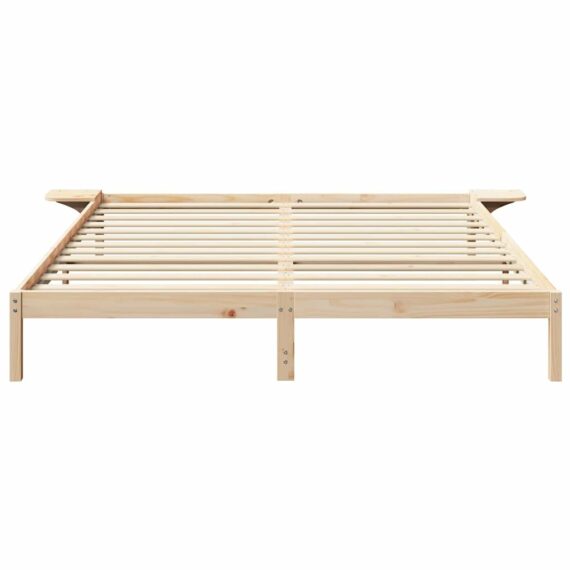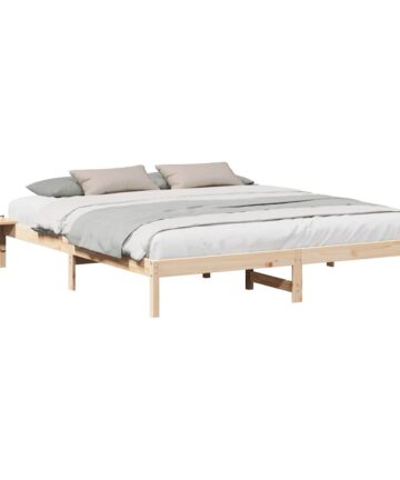 Dieses moderne Plattformbettgestell aus massivem Kiefernholz verbindet Stil mit Praktikabilität. Mit klaren Linien und einem minimalistischen Flair verleiht es jedem Schlafzimmer eine elegante Note. Die rechteckige Form sorgt für ein schlankes Aussehen, und die beiden integrierten Nachttische sparen Platz und halten alles, was du brauchst, nah bei dir. Wenn du das Aussehen und die Funktionalität deines Schlafzimmers aufpeppen möchtest, ist dieses Bettgestell genau das Richtige. Und der Aufbau geht echt schnell. Massivholz-Konstruktion: Dieses Bettgestell aus massivem Kiefernholz ist robust und langlebig. Das hochwertige Holz sorgt dafür, dass es lange hält und dir eine stabile Basis bietet, die den täglichen Gebrauch problemlos übersteht. Die natürliche Beschichtung verleiht jedem Raum eine warme Note, die zu jedem Stil passt. Integrierte Nachttische: Das Bettgestell hat zwei praktische integrierte Nachttische, die ideal sind, um deine wichtigsten Dinge zu verstauen und alles griffbereit zu haben. Dieses clevere Design verbessert die Organisation deines Schlafzimmers und harmoniert gut mit dem Gesamtbild des Rahmens. Einfache Montage: Der Aufbau dieses Bettgestells ist kinderleicht. Du brauchst zwei Leute und ein paar grundlegende Werkzeuge wie einen Schraubendreher, einen Maulschlüssel und ein Maßband. Die klaren Anleitungen machen das Ganze einfach und führen zu einem stabilen Gestell, das sofort einsatzbereit ist. Ideal für alle, die unkomplizierte DIY-Projekte lieben. Fester Lattenrost: Der feste Lattenrost bietet stabile Unterstützung für deine Matratze, ohne dass ein Boxspring nötig ist. Die Latten sorgen für Stabilität und können bis zu 110 kg tragen, was es für alle Matratzenarten passend macht. Niedriger Pflegeaufwand: Für die Pflege des Bettes brauchst du keine scharfen Chemikalien oder scheuernde Reinigungsmittel. Ein wenig regelmäßiges Abstauben reicht aus, um es gut aussehen zu lassen und Abnutzungen zu vermeiden, damit es lange schön bleibt.