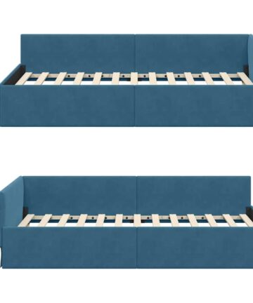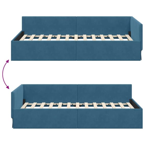 Das Eckbettgestell aus Stoff ist ein echt schickes Möbelstück für alle, die Eleganz und Funktionalität in ihrem Schlafzimmer wollen. In rechteckiger Form verkörpert dieser moderne Bettrahmen Einfachheit, ergänzt durch ein wandmontiertes Kopfteil, das einen coolen Look bietet. Die glatte Samtoberfläche bringt einen Hauch von weichem Glamour, während die anpassbare Natur unterschiedlichen Schlafbedürfnissen gerecht wird. Dieses Stück strahlt Raffinesse aus und ist perfekt für Orte, wo Komfort und Stil zusammenkommen. Hochwertige Polyester-Oberfläche Das Kopfteil und die Rückenverkleidung haben eine tolle Polyester-Oberfläche, die Atmungsaktivität und Haltbarkeit für dein Schlafzimmer gewährleistet. Die elegante, sanfte Oberfläche zusammen mit dem schönen blauen Farbton bringt ein einladendes und zeitloses Gefühl. Hochwertiger Holzrahmen Dieses Bettgestell besteht aus einem stabilen Holzwerkstoffrahmen, der sich gut gegen täglichen Verschleiß bewährt. Es bietet die nötige Stabilität und bleibt dennoch leicht, was die Anpassungen und die Reinigung erleichtert. Das ist die perfekte Basis für erholsamen Schlaf. Moderne Bauweise Dieses Bettgestell zeigt einen modernen Stil mit klaren Linien und minimalen Verzierungen, perfekt für zeitgenössische oder klassische Umgebungen. Das feste Lattenrost-Design sorgt für gleichmäßigen Halt und bringt eine Balance zwischen Form und Funktion, ohne den Komfort zu schmälern. Verstellbare Kopfteil-Funktionen Das Kopfteil des Bettgestells lässt sich in der Höhe und im Winkel anpassen, um den Komfort zu erhöhen. Die manuelle Verstellbarkeit passt zum Design des Rahmens, das Praktikabilität und Luxus vereint. Unkomplizierte Pflege Mit durchdachtem Design benötigt die Pflege nur ein Abwischen mit einem feuchten Tuch, was die Wartung einfach macht. Halte den edlen Look mit minimalem Aufwand aufrecht und bewahre seinen Charme ohne viel Aufwand.