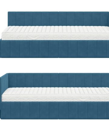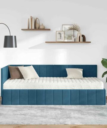 Das moderne rechteckige Velvet Corner Bed Frame ist der perfekte Blickfang für jedes stylische Schlafzimmer. Sein schlankes Design zusammen mit dem hochwertigen Samt-Headboard verleiht einen weichen Touch, der die Eleganz deines Raumes hebt. Aus Holzwerkstoff gefertigt, bietet es eine starke und langlebige Basis, genau das Richtige für Stadtbewohner und Minimalisten, die ihren Schlafbereich mit einem Hauch von Flair und Funktion aufpeppen wollen. Materialien: Das Bettgestell ist aus hochwertigem Holzwerkstoff und sieht damit robust und stylish aus. Dazu kommt das weiche Samt-Headboard, das eine gemütliche und luxuriöse Atmosphäre schafft. Es verspricht sowohl Stil als auch Langlebigkeit. Inklusive Komponenten: Du bekommst ein rechteckiges Eckbettgestell zusammen mit einer bequemen Schaumstoffmatratze. Diese Matratze unterstützt alle Körpertypen gut und hat eine mittlere Festigkeit, die verschiedene Schlafstile angenehm macht. Alles ist perfekt aufeinander abgestimmt für besseres Schlafen. Eigenschaften / Funktion: Die schlanken Beine geben den stabilen Halt, während sie den minimalistischen Look unterstützen. Der feste Lattenrost hält die Matratze sicher an ihrem Platz und trägt zur allgemeinen Festigkeit bei. Empfohlene Verwendung: Am besten für Schlafzimmer, passt der Rahmen gut zu modernen oder minimalistischen Umgebungen. Es ist sowohl ein praktischer Schlafplatz als auch ein stilvoller Hingucker, der Form und Funktion verbindet. Pflege & Wartung: Halte diese Schönheit in gutem Zustand, indem du die Oberfläche mit einem trockenen Tuch abwischst, um Staub fernzuhalten. Das Samt-Headboard braucht nur eine sanfte Behandlung mit einer weichen Bürste, um die tolle Textur frisch zu halten.