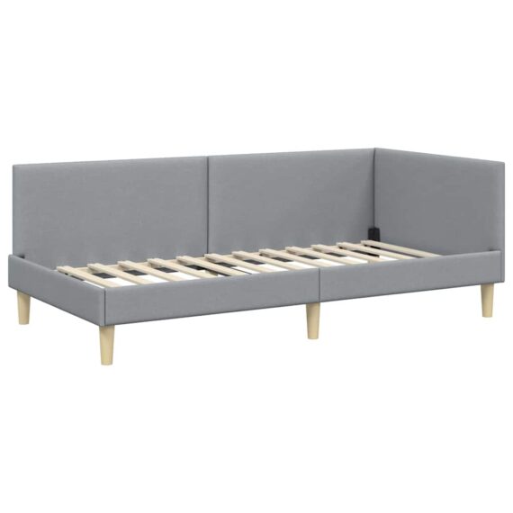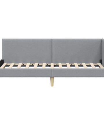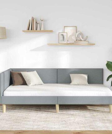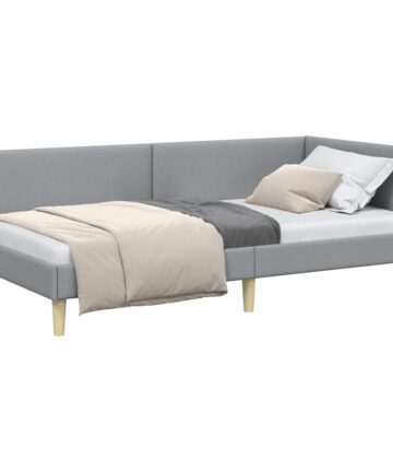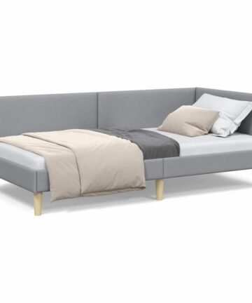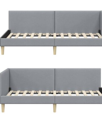 Dieses Eckbettgestell aus Stoff bringt modernen Stil und praktische Nutzung zusammen und ist perfekt, um dein Schlafzimmer aufzupeppen. Mit seinen klaren Linien und dem eleganten Design passt es überall hin. Die glatte Textur und die erdigen Farben schaffen eine einladende Atmosphäre. Es ist ideal für gemütliche Räume, passt perfekt in die Ecken und nutzt deinen Platz optimal, während es eine entspannte Stimmung wahrt. Hochwertige Materialien: Aus Stoff und Holzwerkstoff gefertigt, ist es langlebig und trendy. Der Rahmen ist stabil und hält lange, mit einer angenehm weichen Polyesterpolsterung, die bequem und atmungsaktiv ist. Diese Materialien sorgen für gute Belüftung, damit es frisch bleibt fürs Schlafen und leicht zu handhaben ist. Verstellbares Kopfteil: Das Kopfteil lässt sich manuell einfach an deine Bedürfnisse anpassen. Das hellgraue Polyester sieht super aus und fühlt sich bequem an, egal ob du liest oder fernsiehst. Du hast somit viele Möglichkeiten für Entspannung und Komfort, was das Chillen im Bett zu einer tollen Zeit macht. Robuster Lattenrahmen: Mit stabilen Latten bietet der Rahmen festen Halt. Diese Lattenbasis belüftet deine Matratze, sodass du keinen Boxspring brauchst, was dir auf lange Sicht Komfort gibt. Er ist geeignet für die meisten Matratzengrößen und verhindert durchhängen, was für gleichmäßige Unterstützung sorgt. Moderner Stil: Dieses Bett bringt mit seinem minimalistischen Design und dem sanften Finish einen Hauch von Eleganz. Die glatte Textur und die stabilen Beine verbinden Form und Funktion und verhelfen deinem Raum zu einer raffinierten Note, während sie stabilen Halt für besseren Schlaf bieten. Einfache Pflege: Dieses Bett sauber zu halten ist super einfach. Wische einfach mit einem feuchten Tuch drüber, um Staub oder Verschüttungen zu entfernen, damit es immer gut aussieht. Das pflegeleichte Design ist für jeden praktisch und sorgt dafür, dass es mit minimalem Aufwand ansprechend bleibt.