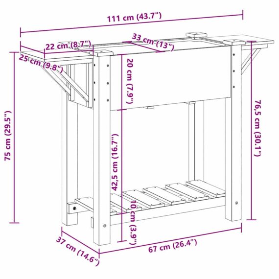 Der Holz-Gartenpflanzer mit Regal bringt Style und Praktikabilität zusammen. Er ist eine schicke Ergänzung für jeden Außenbereich. Mit seinem minimalistischen Look passt dieser Pflanzer super in viele Umgebungen und peppt Gärten und Terrassen auf. Aus massivem Lärchenholz gefertigt, hat er ein zeitloses Gefühl mit seiner rustikalen Oberfläche, die eine gemütliche Landhausatmosphäre ausstrahlt. Die glatte Oberfläche und die rechteckige Form sind ideal für verschiedene Pflanzen oder dekorative Arrangements, was ihn zu einer tollen Möglichkeit macht, die Atmosphäre in deinem Garten zu verbessern. Materialien: Aus solidem Lärchenholz, das für seine Wetterbeständigkeit bekannt ist, ist der Pflanzer sowohl langlebig als auch ansprechend. Die glatte Oberfläche sieht schick aus, während die rustikale Verarbeitung harmonisch mit der Natur verschmilzt. Enthaltene Komponenten: Der Pflanzer hat ein integriertes Regal aus demselben robusten Lärchenholz, das einfachen Zugriff auf deine Gartenwerkzeuge oder dekorative Elemente bietet. Ideal für Gärtner, die etwas Praktisches und Stylisches suchen. Merkmale / Funktion / Design: Mit klaren Linien und einer unkomplizierten Struktur hält dieser Pflanzer es einfach. Seine rechteckige Form ist klassisch und unaufdringlich, während das zusätzliche Regal die Bedürfnisse von Gärtnern und Dekorateuren abdeckt. Empfohlene Anwendungen: Perfekt für Gärten, Terrassen oder jeden Außenbereich, verwandelt dieser Pflanzer jeden Bereich in eine lebendige Oase. Er eignet sich hervorragend für Blumen, Kräuter oder Gemüse und bringt frisches Grün in deine Umgebung. Sein vielseitiges Design macht ihn für alle Arten von Außenbereichen geeignet. Pflege & Wartung: Den Pflanzer zusammenzubauen ist super einfach – du brauchst nur einen Schraubendreher. Sobald er steht, behalte ihn ganz unkompliziert in einem guten Zustand: einfach mit einem feuchten Tuch abwischen und scharfe Chemikalien vermeiden. Eine pflegeleichte Wahl für Außenbereiche, die mit minimalem Aufwand schön bleibt.