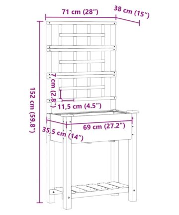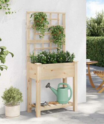 Unser moderner, rechteckiger Gartenpflanzer mit Spalier und Regal kombiniert stylisches Design mit praktischer Nutzung, perfekt, um jeden Außenbereich aufzuwerten. Er sorgt dafür, dass dein Garten oder deine Terrasse schlichte Eleganz ausstrahlt. Der beigen Pflanzer hat klare Linien und eine glatte Oberfläche, die super mit einem modernen Außendekor harmoniert. Er sieht nicht nur gut aus; seine solide Basis bietet Platz für viele Pflanzen, sodass sowohl erfahrene Gärtner als auch Neulinge ihre Fähigkeiten zeigen können. Robuste Fichtenholz-Bauweise Der Gartenpflanzer ist aus hartem, solidem Fichtenholz gefertigt. Er sieht in jedem Außenbereich klasse aus und hält ewig. Dank seiner wasserabweisenden Eigenschaften meistert er jedes Wetter prima. Praktisches Design Mit einem stabilen Spalier und Regal bietet dieser Pflanzer mehr als nur Platz für Pflanzen. Das zusätzliche Regal ist perfekt für deine Gartengeräte oder Kleinigkeiten, sodass der Raum optimal genutzt wird. Er ist sowohl für die Optik als auch für die praktische Nutzung im Garten gedacht. Einfache Montage Der Zusammenbau geht ganz leicht – du brauchst nur einen Schraubendreher. Du hast ihn schnell fertig und kannst sofort deine Pflanzen und Deko-Elemente hinzufügen, wenn er in deinem Garten steht. Modernes Aussehen Dieser Pflanzer verbindet modernen Stil mit rustikalen Akzenten und verleiht jedem Außenbereich einen schicken Touch. Die neutrale beige Farbe passt super zu allen Umgebungen und lässt deinen Garten, deine Terrasse oder deinen Balkon fabelhaft aussehen. Pflegeleicht Er wurde so konzipiert, dass er wenig Wartung braucht. Halte dich einfach an die Anweisungen, damit er gut aussieht. Dank der hochwertigen, wasserabweisenden Materialien ist er das ganze Jahr über ideal für den Außenbereich.