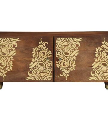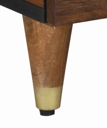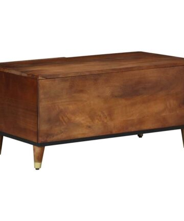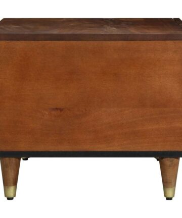 Dieser moderne Couchtisch ist ein Must-have für ein stylisches Wohnzimmer. Mit seiner rechteckigen Form und den strukturierten Oberflächen fügt er sich nahtlos in trendige Räume ein. Das schlanke Design, ergänzt durch goldene Akzente und eine matte Oberfläche, verbindet Schönheit und Praktikabilität. Sein einzigartiger Aufbau und die handgefertigte Oberfläche zeigen die Kunst der modernen Handwerkskunst und bieten gleichzeitig clevere Stauraumlösungen für den Alltag. Massivholz Mango: Der Couchtisch ist aus hochwertigem, massivem Mango-Holz gemacht, das für seine Langlebigkeit bekannt ist. Diese Wahl hält nicht nur ewig, sondern bringt auch natürlichen Charme in dein Zuhause. Funktionaler Stauraum: Mit Fächern und einer eleganten Tür mit Scharnieren hat der Tisch viel Platz für Bücher, Zeitschriften oder hübsche Deko. Dieses durchdachte Setup sorgt dafür, dass alles schön ordentlich ist und erhöht den Nutzen des Tisches. Stylisches Design: Die handbemalte Front und die matte Oberfläche verleihen dem Tisch moderne Eleganz mit klaren Linien. Er hat einen künstlerischen Flair, ohne übertrieben zu wirken und bleibt dabei minimalistisch und schick. Kegelförmige Beine aus Mango-Holz: Er steht auf trendigen, kegelförmigen Beinen aus Mango-Holz und bietet eine starke Basis, während er einen coolen mid-century modernen Touch hinzufügt. Die Form der Beine unterstreicht seine Schlichtheit und lässt ihn in jeden Raumstil passen, was ihn zu einem echten Hingucker macht. Einfache Pflege: Sein schickes Aussehen zu bewahren, ist total einfach. Ein schnelles Abwischen mit einem trockenen Tuch genügt, um sicherzustellen, dass er über die Jahre hinweg top aussieht.