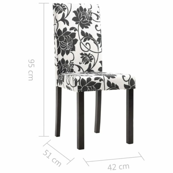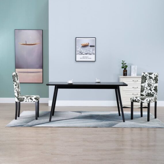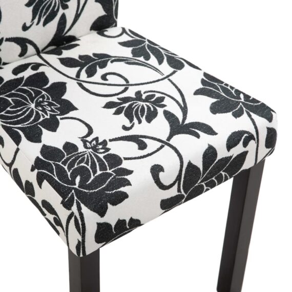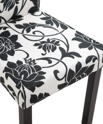 Dieses Esszimmerstuhl-Set in modernem Design ist ein wahrer Hingucker in jedem Raum. Die Esszimmerstühle sind mit weichem Stoff bezogen und dick gepolstert, um maximalen Sitzkomfort zu bieten. Das ergonomische Design macht den Esszimmerstuhl zu einem äußerst bequemen Sitzmöbel. Der Stuhl verfügt über ein einzigartiges Blumen-Design, das ihm einen fabelhaften Charme verleiht. Dank der Beine aus Massivholz sind die Stühle robust und stabil. Die Lieferung umfasst 2 Esszimmerstühle.