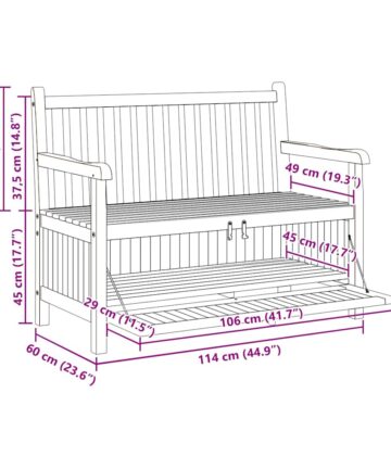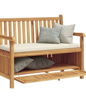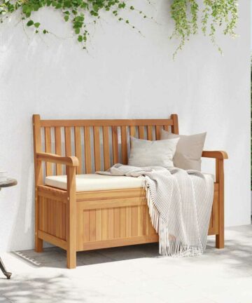 Diese schöne Gartenbank hat einen rustikalen Charme, der jeden Ort aufhellt. Es geht nicht nur ums Aussehen – sie ist auch total praktisch und eine super Wahl für Gärten und Terrassen. Die warmen, glatten Töne des massiven Teakholzes geben ihr eine richtig einladende Atmosphäre, ideal zum Entspannen oder einfach Nachdenken. Mit bequemen Armlehnen und einer Rückenlehne ist sie perfekt für Gartenfeiern oder eine entspannte Lesestunde. Ihr naturinspiriertes Design passt super zur Natur und bietet eine tolle Kombination aus Stil und Funktionalität. Qualitätsbau: Diese Gartenbank ist aus massivem Teakholz, bekannt für seine Stärke und Schönheit. Sie hält das Wetter klasse aus und sieht jahrelang toll aus. Die Feuchtigkeitsbeständigkeit von Teakholz sorgt dafür, dass es nicht schnell abnutzt, was sie perfekt für jedes Wetter macht. Ihre natürlichen Öle verhindern das Verrotten, also weißt du, dass sie lange hält. Geheimer Stauraum: Unter der bequemen Sitzfläche ist ein cleverer versteckter Stauraum. Ideal zum Verstauen von Gartengeräten, Kissen oder was auch immer du brauchst. Es ist eine geniale Kombination aus Sitzgelegenheit und Stauraum in einem. Bequemes Design: Mit ihren geschnitzten Holzarmlehnen und der unterstützenden Rückenlehne aus massivem Teakholz steht diese Bank ganz im Zeichen deines Komforts. Sie ist so gebaut, dass sie dich lange bequem hält und sich gut an deine Körperhaltung anpasst. Für den Außenbereich bereit: Speziell für draußen gemacht, passt sie perfekt zu Garten- und Terrassenthemen. Nutze sie alleine oder mit anderen Gartenmöbeln für eine flexible Gestaltung. Ihr einladendes Design macht sie zur perfekten Wahl für jede Outdoor-Veranstaltung. Pflegeleicht: Decke sie bei schlechtem Wetter ab, um sie frisch und sauber zu halten. Lass sie bei extremen Temperaturen nicht zu lange draußen. Ein bisschen Pflege sorgt dafür, dass diese Bank ein toller Teil deines Außenbereichs bleibt.