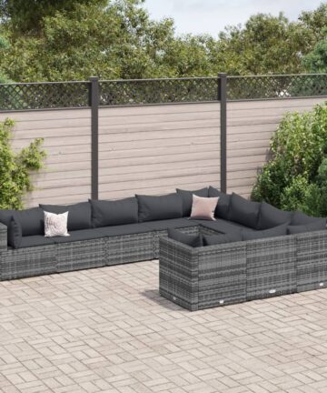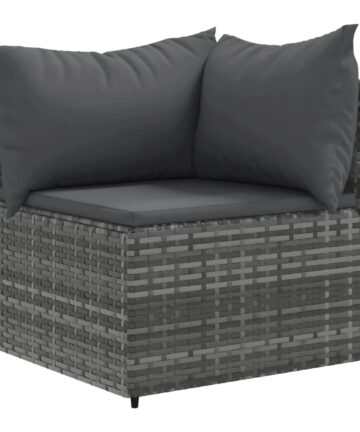 Diese Garten-Sofagarnitur ist die perfekte Ergänzung zu deinem Garten, deiner Terrasse oder deinem Innenhof. Sie bietet einen bequemen und einladenden Platz, um mit Familie und Freunden zu plaudern oder dich einfach nur zu entspannen und das Leben im Freien zu genießen. Langlebiges Material: PE-Rattan, auch als Poly Rattan bekannt, ist ein robustes, pflegeleichtes synthetisches Material, das die Optik von natürlichem Rattan aufweist. Es kennzeichnet sich durch ein geringes Eigengewicht und lässt sich einfach reinigen. Aufgrund seiner Haltbarkeit und Witterungsbeständigkeit wird es häufig bei der Herstellung von Gartenmöbeln verwendet.Robustes und stabiles Gestell: Der pulverbeschichtete Stahlgestell ist stark, stabil, langlebig sowie korrosions- und wetterbeständig, um eine lang anhaltende Leistung zu gewährleisten.Modulares Design: Dank des modularen Designs lassen sich die Gartenmöbel völlig flexibel und einfach umstellen, um deinen Außenbereich ganz individuell zu gestalten.Bequemes Sitzerlebnis: Dieser Gartensessel mit dick gepolsterten Kissen bietet ein angenehmes Sitzgefühl. Gut zu wissen:Wir empfehlen dir, deine Gartenmöbel mit einer wasserdichten Hülle zu schützen, um lange Zeit eine ansprechende Optik aufzuweisen.