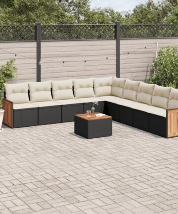 Diese Garten-Sofagarnitur ist die perfekte Ergänzung zu deinem Garten, deiner Terrasse oder deinem Innenhof. Sie bietet einen bequemen und einladenden Platz, um mit Familie und Freunden zu plaudern oder dich einfach nur zu entspannen und das Leben im Freien zu genießen. Langlebiges Material: PE-Rattan, auch als Poly Rattan bekannt, ist ein robustes, pflegeleichtes synthetisches Material, das die Optik von natürlichem Rattan aufweist. Es kennzeichnet sich durch ein geringes Eigengewicht und lässt sich einfach reinigen. Aufgrund seiner Haltbarkeit und Witterungsbeständigkeit wird es häufig bei der Herstellung von Gartenmöbeln verwendet.Stauraum mit wasserfestem Beutel: Das Gartensofa verfügen über ein Staufach unter der Sitzfläche, das mit einem wasserfesten Beutel zur Aufbewahrung von Kissen, Spielzeug und anderen Gegenständen versehen ist. Der Innenbeutel lässt sich mit Klettverschlüssen sicher und stabil an den Gartenmöbeln befestigen.Stabile und pflegeleichte Tischplatte: Dieser Gartentisch besitzt eine Tischplatte aus Akazienholz, die robust und langlebig ist und sich leicht mit einem feuchten Tuch reinigen lässt.Abnehmbarer und waschbarer Bezug: Diese Sitzkissen verfügen über abnehmbare Bezüge für einfaches Waschen und Pflegen.Modulares Design: Dank des modularen Designs lassen sich die Gartenmöbel völlig flexibel und einfach umstellen, um deinen Außenbereich ganz individuell zu gestalten. Gut zu wissen:Wir empfehlen dir, deine Gartenmöbel mit einer wasserdichten Hülle zu schützen, um lange Zeit eine ansprechende Optik aufzuweisen.
