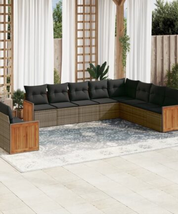 Diese Garten-Sofagarnitur ist die perfekte Ergänzung zu deinem Garten, deiner Terrasse oder deinem Innenhof. Sie bietet einen bequemen und einladenden Platz, um mit Familie und Freunden zu plaudern oder dich einfach nur zu entspannen und das Leben im Freien zu genießen. Langlebiges Material: PE-Rattan, auch als Poly Rattan bekannt, ist ein robustes, pflegeleichtes synthetisches Material, das die Optik von natürlichem Rattan aufweist. Es kennzeichnet sich durch ein geringes Eigengewicht und lässt sich einfach reinigen. Aufgrund seiner Haltbarkeit und Witterungsbeständigkeit wird es häufig bei der Herstellung von Gartenmöbeln verwendet.Stauraum mit wasserfestem Beutel: Das Gartensofa verfügen über ein Staufach unter der Sitzfläche, das mit einem wasserfesten Beutel zur Aufbewahrung von Kissen, Spielzeug und anderen Gegenständen versehen ist. Der Innenbeutel lässt sich mit Klettverschlüssen sicher und stabil an den Gartenmöbeln befestigen.Stabile und pflegeleichte Tischplatte: Dieser Gartentisch besitzt eine Tischplatte aus Akazienholz, die robust und langlebig ist und sich leicht mit einem feuchten Tuch reinigen lässt.Abnehmbarer und waschbarer Bezug: Diese Sitzkissen verfügen über abnehmbare Bezüge für einfaches Waschen und Pflegen.Modulares Design: Dank des modularen Designs lassen sich die Gartenmöbel völlig flexibel und einfach umstellen, um deinen Außenbereich ganz individuell zu gestalten. Gut zu wissen:Wir empfehlen dir, deine Gartenmöbel mit einer wasserdichten Hülle zu schützen, um lange Zeit eine ansprechende Optik aufzuweisen.
