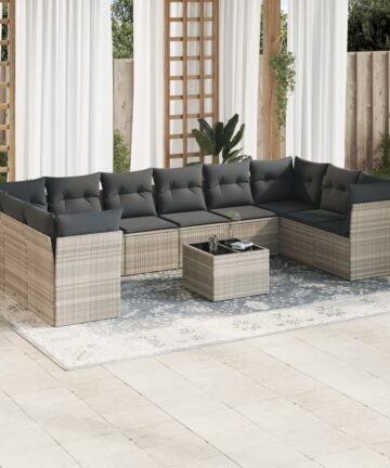 Diese Garten-Sofagarnitur ist die perfekte Ergänzung zu deinem Garten, deiner Terrasse oder deinem Innenhof. Sie bietet einen bequemen und einladenden Platz, um mit Familie und Freunden zu plaudern oder dich einfach nur zu entspannen und das Leben im Freien zu genießen. Langlebiges Material: PE-Rattan, auch als Poly Rattan bekannt, ist ein robustes, pflegeleichtes synthetisches Material, das die Optik von natürlichem Rattan aufweist. Es kennzeichnet sich durch ein geringes Eigengewicht und lässt sich einfach reinigen. Aufgrund seiner Haltbarkeit und Witterungsbeständigkeit wird es häufig bei der Herstellung von Gartenmöbeln verwendet.Bequemes Sitzerlebnis: Dieser Gartensessel mit dick gepolsterten Kissen bietet ein angenehmes Sitzgefühl.Tischplatte aus Glas: Die Tischplatte des Gartentisches besteht aus starkem und langlebigem Hartglas, sodass sie leicht mit einem feuchten Tuch gereinigt werden kann und deinem Außenbereich einen Hauch von Eleganz verleiht.Abnehmbarer und waschbarer Bezug: Diese Sitzkissen verfügen über abnehmbare Bezüge für einfaches Waschen und Pflegen.Modulares Design: Dank des modularen Designs lassen sich die Gartenmöbel völlig flexibel und einfach umstellen, um deinen Außenbereich ganz individuell zu gestalten. Gut zu wissen:Wir empfehlen dir, deine Gartenmöbel mit einer wasserdichten Hülle zu schützen, um lange Zeit eine ansprechende Optik aufzuweisen.