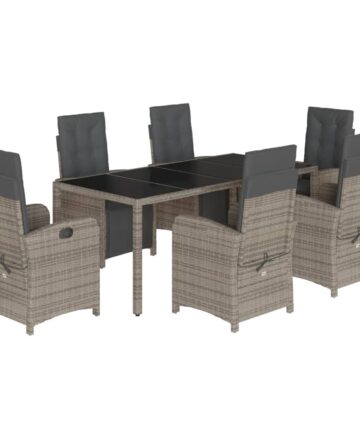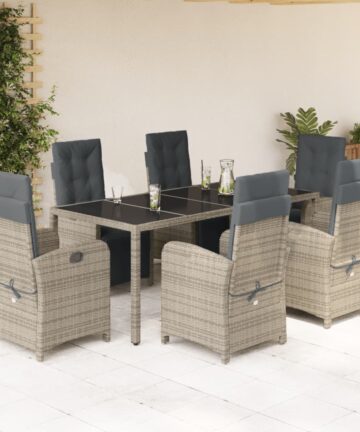 Genieße eine Tasse Kaffee oder unterhalte dich mit deiner Familie und deinen Freunden im Garten, Hinterhof oder auf dem Balkon mit diesem bequemen Bistro-Set! Langlebiges Material: PE-Rattan, auch als Poly Rattan bekannt, ist ein robustes, pflegeleichtes synthetisches Material, das die Optik von natürlichem Rattan aufweist. Es kennzeichnet sich durch ein geringes Eigengewicht und lässt sich einfach reinigen. Aufgrund seiner Haltbarkeit und Witterungsbeständigkeit wird es häufig bei der Herstellung von Gartenmöbeln verwendet.Verstellbare Rückenlehne und Fußstütze: Der Gartensessel ist mit einem Griff versehen. So kannst du die Rückenlehne und den Fußteil durch Ziehen des Griffs verstellen und sie danach schnell wieder in ihre ursprüngliche Position bringen.Bequemes Sitzerlebnis: Dieser Gartensessel mit dick gepolsterten Kissen bietet ein angenehmes Sitzgefühl.Abnehmbarer und waschbarer Bezug: Die Sitzkissen verfügen über abnehmbare Bezüge, die sich ganz einfach waschen und reinigen lassen. Dank der Klappen an der Rückseite können die Rückenkissen ganz einfach an den Rückenlehnen befestigt werden.Tischplatte aus Glas: Die Tischplatte des Gartentisches besteht aus starkem und langlebigem Hartglas, sodass sie leicht mit einem feuchten Tuch gereinigt werden kann und deinem Außenbereich einen Hauch von Eleganz verleiht. Gut zu wissen:Wir empfehlen dir, deine Gartenmöbel mit einer wasserdichten Hülle zu schützen, um lange Zeit eine ansprechende Optik aufzuweisen.
