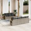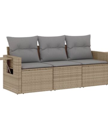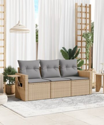 Diese Garten-Sofagarnitur ist die perfekte Ergänzung zu deinem Garten, deiner Terrasse oder deinem Innenhof. Sie bietet einen bequemen und einladenden Platz, um mit Familie und Freunden zu plaudern oder dich einfach nur zu entspannen und das Leben im Freien zu genießen. Langlebiges Material: PE-Rattan, auch als Poly Rattan bekannt, ist ein robustes, pflegeleichtes synthetisches Material, das die Optik von natürlichem Rattan aufweist. Es kennzeichnet sich durch ein geringes Eigengewicht und lässt sich einfach reinigen. Aufgrund seiner Haltbarkeit und Witterungsbeständigkeit wird es häufig bei der Herstellung von Gartenmöbeln verwendet.Stauraum mit wasserfestem Beutel: Das Gartensofa verfügen über ein Staufach unter der Sitzfläche, das mit einem wasserfesten Beutel zur Aufbewahrung von Kissen, Spielzeug und anderen Gegenständen versehen ist. Der Innenbeutel lässt sich mit Klettverschlüssen sicher und stabil an den Gartenmöbeln befestigen.Praktischer Beistelltisch: Dieses Gartensofa verfügt über klappbare Ablagen mit Gasfedern an den Armlehnen, auf denen du verschieden Sachen griffbereit aufbewahren kannst.Abnehmbarer und waschbarer Bezug: Diese Sitzkissen verfügen über abnehmbare Bezüge für einfaches Waschen und Pflegen.Modulares Design: Dank des modularen Designs lassen sich die Gartenmöbel völlig flexibel und einfach umstellen, um deinen Außenbereich ganz individuell zu gestalten. Gut zu wissen:Wir empfehlen dir, deine Gartenmöbel mit einer wasserdichten Hülle zu schützen, um lange Zeit eine ansprechende Optik aufzuweisen.