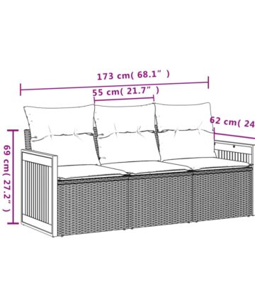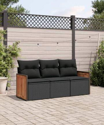 Diese Garten-Sofagarnitur ist die perfekte Ergänzung zu deinem Garten, deiner Terrasse oder deinem Innenhof. Sie bietet einen bequemen und einladenden Platz, um mit Familie und Freunden zu plaudern oder dich einfach nur zu entspannen und das Leben im Freien zu genießen. Langlebiges Material: PE-Rattan, auch als Poly Rattan bekannt, ist ein robustes, pflegeleichtes synthetisches Material, das die Optik von natürlichem Rattan aufweist. Es kennzeichnet sich durch ein geringes Eigengewicht und lässt sich einfach reinigen. Aufgrund seiner Haltbarkeit und Witterungsbeständigkeit wird es häufig bei der Herstellung von Gartenmöbeln verwendet.Stauraum mit wasserfestem Beutel: Das Gartensofa verfügen über ein Staufach unter der Sitzfläche, das mit einem wasserfesten Beutel zur Aufbewahrung von Kissen, Spielzeug und anderen Gegenständen versehen ist. Der Innenbeutel lässt sich mit Klettverschlüssen sicher und stabil an den Gartenmöbeln befestigen.Abnehmbarer und waschbarer Bezug: Diese Sitzkissen verfügen über abnehmbare Bezüge für einfaches Waschen und Pflegen.Modulares Design: Dank des modularen Designs lassen sich die Gartenmöbel völlig flexibel und einfach umstellen, um deinen Außenbereich ganz individuell zu gestalten. Gut zu wissen:Wir empfehlen dir, deine Gartenmöbel mit einer wasserdichten Hülle zu schützen, um lange Zeit eine ansprechende Optik aufzuweisen.