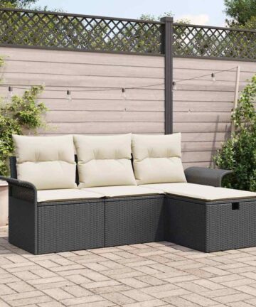 Dieses Outdoor Sofa Set bringt modernes Design und praktische Funktionen zusammen und ist die perfekte Wahl für deinen Balkon oder Garten. Das schicke schwarze Poly Rattan Design verleiht eine zeitgemäße Atmosphäre und ist langlebig – perfekt für gesellige Abende oder entspannte Tage draußen. Modulares Design: Die modulare Anordnung des Sofas lässt dich es an deinen Stil anpassen. Verschiebe die Teile einfach für alles, von kleinen Treffen bis zu großen Partys – so wird dein Raum super flexibel. Wetterfeste Materialien: Aus synthetischem Poly Rattan gemacht, hält dieses Set Regen und Sonne stand und sorgt dafür, dass es durch jede Saison hält. Das wetterfeste Design bedeutet, dass du unbesorgt im Freien relaxen kannst. Bequeme Kissen: Jeder Sitz hat superweiche Kissen für maximalen Komfort – perfekt zum Entspannen an sonnigen Tagen. Die cremefarbenen Bezüge passen toll zum dunklen Rahmen und machen es zu einem gemütlichen Platz zum Relaxen. Einfache Pflege: Mit abnehmbaren Kissenbezügen mit Reißverschluss ist die Reinigung deines Sofas ein Kinderspiel, was dein Outdoor-Set immer frisch aussehen lässt – ohne viel Aufwand. Perfekt für einen vollen Alltag! Stylische Ästhetik: Eine gelungene Mischung aus modernem Design und klassischen Farben, hebt dieses Set die Ästhetik deines Außenbereichs hervor. Das schicke Aussehen und die gewebte Textur schaffen eine einladende Atmosphäre – perfekt zum Entspannen und gemütlichem Beisammensein.