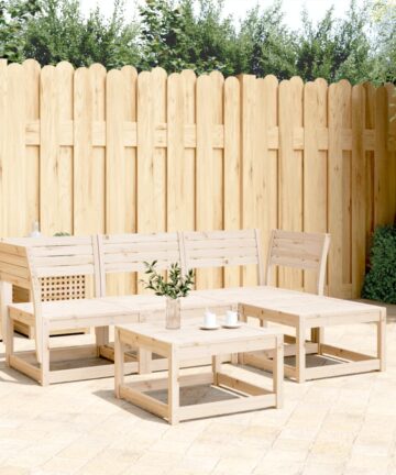 Dieses Garten-Lounge-Set aus Holz weist ein elegantes Design auf und ist eine ausgezeichnete Wahl zum Entspannen im Garten oder auf der Terrasse. Massives Kiefernholz: Massives Kiefernholz ist ein wunderschönes Naturmaterial. Kiefernholz weist eine gerade Maserung auf und die Aststellen verleihen dem Material seine charakteristische, rustikale Optik. Latten-Design: Das Latten-Design verhindert die Ansammlung von Wasser auf dem Lounge-Set, hält die Sitzfläche trocken und verhindert Verrottung. Bequemes Sitzerlebnis: Die Rückenlehne und die Armlehne sorgen für zusätzlichen Sitzkomfort. Modulares Design: Dank des modularen Designs lassen sich die Gartenmöbel völlig flexibel und einfach umstellen, um deinen Außenbereich ganz individuell zu gestalten. Gut zu wissen:Wir empfehlen dir, deine Gartenmöbel mit einer wasserdichten Hülle zu schützen, um lange Zeit eine ansprechende Optik aufzuweisen.