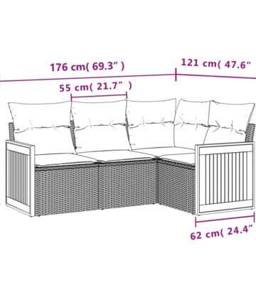 Diese Garten-Sofagarnitur ist die perfekte Ergänzung zu deinem Garten, deiner Terrasse oder deinem Innenhof. Sie bietet einen bequemen und einladenden Platz, um mit Familie und Freunden zu plaudern oder dich einfach nur zu entspannen und das Leben im Freien zu genießen. Langlebiges Material: PE-Rattan, auch als Poly Rattan bekannt, ist ein robustes, pflegeleichtes synthetisches Material, das die Optik von natürlichem Rattan aufweist. Es kennzeichnet sich durch ein geringes Eigengewicht und lässt sich einfach reinigen. Aufgrund seiner Haltbarkeit und Witterungsbeständigkeit wird es häufig bei der Herstellung von Gartenmöbeln verwendet.Stauraum mit wasserfestem Beutel: Das Gartensofa verfügen über ein Staufach unter der Sitzfläche, das mit einem wasserfesten Beutel zur Aufbewahrung von Kissen, Spielzeug und anderen Gegenständen versehen ist. Der Innenbeutel lässt sich mit Klettverschlüssen sicher und stabil an den Gartenmöbeln befestigen.Abnehmbarer und waschbarer Bezug: Diese Sitzkissen verfügen über abnehmbare Bezüge für einfaches Waschen und Pflegen.Modulares Design: Dank des modularen Designs lassen sich die Gartenmöbel völlig flexibel und einfach umstellen, um deinen Außenbereich ganz individuell zu gestalten. Gut zu wissen:Wir empfehlen dir, deine Gartenmöbel mit einer wasserdichten Hülle zu schützen, um lange Zeit eine ansprechende Optik aufzuweisen.