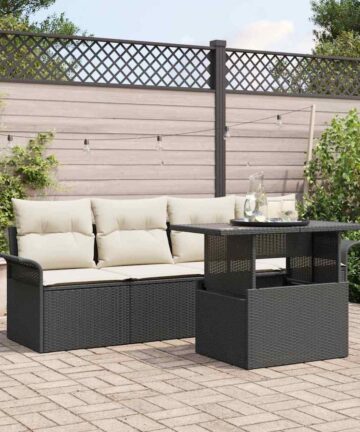 Dieses 5-teilige modulare Garten-Sofa-Set in schickem Schwarz und Creme bringt viel Flexibilität und Stil zu deinem Outdoor-Chillen. Handgewebt aus robustem Poly-Rattan schafft es eine gemütliche Atmosphäre, die perfekt für Treffen auf deinem Balkon oder deiner Terrasse ist. Modulares Design: Stell die Teile so zusammen, dass sie in deinen Raum passen, egal ob für entspanntes Abhängen oder eine Gartenparty. Handgewebt: Jedes Stück zeigt echtes Handwerk, das nicht nur schick aussieht, sondern auch stabil ist und viele Jahre Freude bietet. Wetterfeste Materialien: Hergestellt aus hochwertigem Poly-Rattan, hält dieses Set auch schlechtem Wetter stand und ist super für draußen. Komfortable Kissen: Sie kommen mit weichen Kissen, die toll aussehen und sich angenehm anfühlen – perfekt für lange Entspannungsstunden. Einfach zu reinigen: Die abnehmbaren Kissenbezüge machen die Reinigung kinderleicht, damit deine Sitzgelegenheit immer gut aussieht.