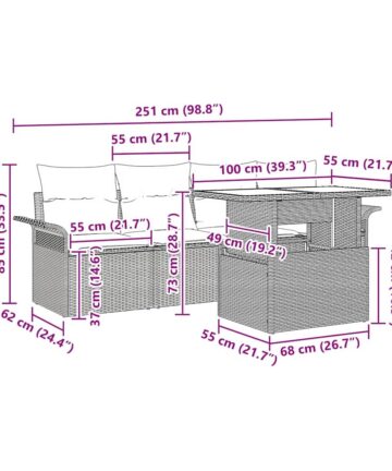 - Lieferumfang: 2 x Mittelsofa, 2 x Armsofa, 1 x Tisch