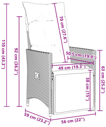 - Abmessungen in Sitzposition: 56 x 59 x 92 cm (B x T x H)