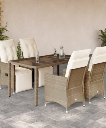 Genieße einen Kaffee oder unterhalte dich mit deiner Familie und deinen Freunden im Garten, Hinterhof oder auf dem Balkon mit diesem bequemen Bistro-Set! Langlebiges Material: PE-Rattan, auch als Poly Rattan bekannt, ist ein robustes, pflegeleichtes synthetisches Material, das die Optik von natürlichem Rattan aufweist. Es kennzeichnet sich durch ein geringes Eigengewicht und lässt sich einfach reinigen. Aufgrund seiner Haltbarkeit und Witterungsbeständigkeit wird es häufig bei der Herstellung von Gartenmöbeln verwendet.Verstellbare Rückenlehne und verstellbares Fußteil: Der Gartensessel ist mit einem Griff versehen. So kannst du die Rückenlehne und das Fußteil durch Ziehen des Griffs verstellen und sie danach schnell wieder in ihre ursprüngliche Position bringen.Bequemes Sitzerlebnis: Dieser Gartensessel mit dick gepolsterten Kissen bietet ein angenehmes Sitzgefühl.Abnehmbarer und waschbarer Bezug: Die Sitzkissen verfügen über abnehmbare Bezüge, die sich ganz einfach waschen und reinigen lassen. Dank der Klappen an der Rückseite können die Rückenkissen ganz einfach an den Rückenlehnen befestigt werden.Tischplatte aus Glas: Die Tischplatte des Gartentisches besteht aus starkem und langlebigem Hartglas, sodass sie leicht mit einem feuchten Tuch gereinigt werden kann und deinem Außenbereich einen Hauch von Eleganz verleiht. Gut zu wissen:Wir empfehlen dir, deine Gartenmöbel mit einer wasserdichten Hülle zu schützen, um lange Zeit eine ansprechende Optik aufzuweisen.