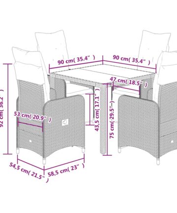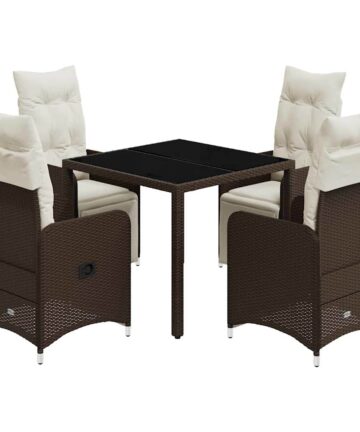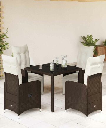 Genieße einen Kaffee oder unterhalte dich mit deiner Familie und deinen Freunden im Garten, Hinterhof oder auf dem Balkon mit diesem bequemen Bistro-Set! Langlebiges Material: PE-Rattan, auch als Poly Rattan bekannt, ist ein robustes, pflegeleichtes synthetisches Material, das die Optik von natürlichem Rattan aufweist. Es kennzeichnet sich durch ein geringes Eigengewicht und lässt sich einfach reinigen. Aufgrund seiner Haltbarkeit und Witterungsbeständigkeit wird es häufig bei der Herstellung von Gartenmöbeln verwendet.Verstellbare Rückenlehne und verstellbares Fußteil: Der Gartensessel ist mit einem Griff versehen. So kannst du die Rückenlehne und das Fußteil durch Ziehen des Griffs verstellen und sie danach schnell wieder in ihre ursprüngliche Position bringen.Bequemes Sitzerlebnis: Dieser Gartensessel mit dick gepolsterten Kissen bietet ein angenehmes Sitzgefühl.Abnehmbarer und waschbarer Bezug: Die Sitzkissen verfügen über abnehmbare Bezüge, die sich ganz einfach waschen und reinigen lassen. Dank der Klappen an der Rückseite können die Rückenkissen ganz einfach an den Rückenlehnen befestigt werden.Tischplatte aus Glas: Die Tischplatte des Gartentisches besteht aus starkem und langlebigem Hartglas, sodass sie leicht mit einem feuchten Tuch gereinigt werden kann und deinem Außenbereich einen Hauch von Eleganz verleiht. Gut zu wissen:Wir empfehlen dir, deine Gartenmöbel mit einer wasserdichten Hülle zu schützen, um lange Zeit eine ansprechende Optik aufzuweisen.