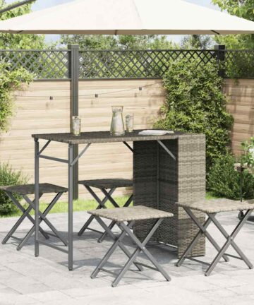 Dieses Garten-Essgruppe ist eine gute Wahl für den Campingausflug oder zum Entspannen im Garten, Hinterhof oder auf der Terrasse. Langlebiges Material: PE-Rattan, auch als Poly Rattan bekannt, ist ein robustes, pflegeleichtes synthetisches Material, das die Optik von natürlichem Rattan aufweist. Es kennzeichnet sich durch ein geringes Eigengewicht und lässt sich einfach reinigen. Aufgrund seiner Haltbarkeit und Witterungsbeständigkeit wird es häufig bei der Herstellung von Gartenmöbeln verwendet.Platzsparende Aufbewahrung: Der Tisch und die Hocker können zur einfachen Lagerung und zum Transport zusammengeklappt werden. Darüber hinaus können die Hocker auch im Inneren des Tisches verstaut werden, was die Raumeffizienz weiter erhöht.Robuster und stabiler Rahmen: Dank des pulverbeschichteten Stahlrahmens ist das Möbelstück robust, stabil und für den täglichen Einsatz im Außenbereich geeignet. Gut zu wissen:Wir empfehlen dir, deine Gartenmöbel mit einer wasserdichten Hülle zu schützen, um lange Zeit eine ansprechende Optik aufzuweisen.