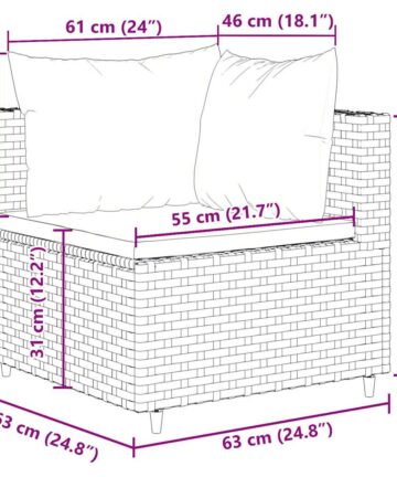- Abmessungen Sitzkissen: 55/63 x 55 x 3 cm (B x T x H)