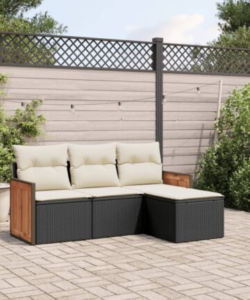 Diese Garten-Sofagarnitur ist die perfekte Ergänzung zu deinem Garten, deiner Terrasse oder deinem Innenhof. Sie bietet einen bequemen und einladenden Platz, um mit Familie und Freunden zu plaudern oder dich einfach nur zu entspannen und das Leben im Freien zu genießen. Langlebiges Material: PE-Rattan, auch als Poly Rattan bekannt, ist ein robustes, pflegeleichtes synthetisches Material, das die Optik von natürlichem Rattan aufweist. Es kennzeichnet sich durch ein geringes Eigengewicht und lässt sich einfach reinigen. Aufgrund seiner Haltbarkeit und Witterungsbeständigkeit wird es häufig bei der Herstellung von Gartenmöbeln verwendet.Stauraum mit wasserfestem Beutel: Das Gartensofa verfügen über ein Staufach unter der Sitzfläche, das mit einem wasserfesten Beutel zur Aufbewahrung von Kissen, Spielzeug und anderen Gegenständen versehen ist. Der Innenbeutel lässt sich mit Klettverschlüssen sicher und stabil an den Gartenmöbeln befestigen.Stabile und pflegeleichte Tischplatte: Dieser Gartentisch besitzt eine Tischplatte aus Akazienholz, die robust und langlebig ist und sich leicht mit einem feuchten Tuch reinigen lässt.Abnehmbarer und waschbarer Bezug: Diese Sitzkissen verfügen über abnehmbare Bezüge für einfaches Waschen und Pflegen.Modulares Design: Dank des modularen Designs lassen sich die Gartenmöbel völlig flexibel und einfach umstellen, um deinen Außenbereich ganz individuell zu gestalten. Gut zu wissen:Wir empfehlen dir, deine Gartenmöbel mit einer wasserdichten Hülle zu schützen, um lange Zeit eine ansprechende Optik aufzuweisen.