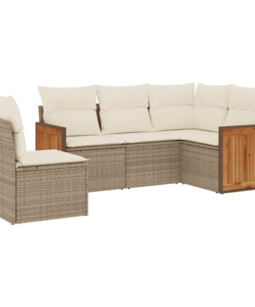 5-tlg. Garten-Sofagarnitur mit Kissen Beige Poly Rattan