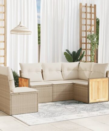 Be the first to review “5-tlg. Garten-Sofagarnitur mit Kissen Beige Poly Rattan”