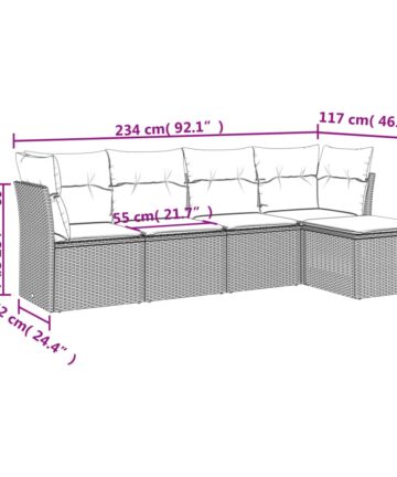 Diese Garten-Sofagarnitur ist die perfekte Ergänzung zu deinem Garten, deiner Terrasse oder deinem Innenhof. Sie bietet einen bequemen und einladenden Platz, um mit Familie und Freunden zu plaudern oder dich einfach nur zu entspannen und das Leben im Freien zu genießen. Langlebiges Material: PE-Rattan, auch als Poly Rattan bekannt, ist ein robustes, pflegeleichtes synthetisches Material, das die Optik von natürlichem Rattan aufweist. Es kennzeichnet sich durch ein geringes Eigengewicht und lässt sich einfach reinigen. Aufgrund seiner Haltbarkeit und Witterungsbeständigkeit wird es häufig bei der Herstellung von Gartenmöbeln verwendet.Bequemes Sitzerlebnis: Dieses Gartenmöbel-Set wird samt dick gepolsterten Kissen geliefert, um höchsten Sitzkomfort zu bieten.Abnehmbarer und waschbarer Bezug: Diese Sitzkissen verfügen über abnehmbare Bezüge für einfaches Waschen und Pflegen.Modulares Design: Dank des modularen Designs lassen sich die Gartenmöbel völlig flexibel und einfach umstellen, um deinen Außenbereich ganz individuell zu gestalten. Gut zu wissen:Wir empfehlen dir, deine Gartenmöbel mit einer wasserdichten Hülle zu schützen, um lange Zeit eine ansprechende Optik aufzuweisen.
