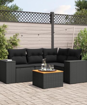 Diese Garten-Sofagarnitur ist die perfekte Ergänzung zu deinem Garten, deiner Terrasse oder deinem Innenhof. Sie bietet einen bequemen und einladenden Platz, um mit Familie und Freunden zu plaudern oder dich einfach nur zu entspannen und das Leben im Freien zu genießen. Langlebiges Material: PE-Rattan, auch als Poly Rattan bekannt, ist ein robustes, pflegeleichtes synthetisches Material, das die Optik von natürlichem Rattan aufweist. Es kennzeichnet sich durch ein geringes Eigengewicht und lässt sich einfach reinigen. Aufgrund seiner Haltbarkeit und Witterungsbeständigkeit wird es häufig bei der Herstellung von Gartenmöbeln verwendet.Stabile und pflegeleichte Tischplatte: Dieser Gartentisch besitzt eine Tischplatte aus Akazienholz, die robust und langlebig ist und sich leicht mit einem feuchten Tuch reinigen lässt. Stauraum mit wasserfestem Beutel: Jedes Gartensofa verfügt über ein Staufach unter der Sitzfläche, das mit einem wasserfesten Beutel zur Aufbewahrung von Kissen, Spielzeug und anderen Gegenständen versehen ist. Die Kissen sind mit Bezügen versehen und lassen sich mit Klettverschlüssen fest und sicher an den Sofas befestigen.Bequemes Sitzerlebnis: Dieser Gartensessel mit dick gepolsterten Kissen bietet ein angenehmes Sitzgefühl.Modulares Design: Dank des modularen Designs lassen sich die Gartenmöbel völlig flexibel und einfach umstellen, um deinen Außenbereich ganz individuell zu gestalten. Gut zu wissen:Wir empfehlen dir, deine Gartenmöbel mit einer wasserdichten Hülle zu schützen, um lange Zeit eine ansprechende Optik aufzuweisen.