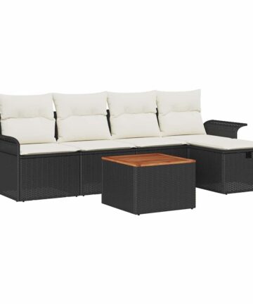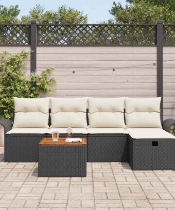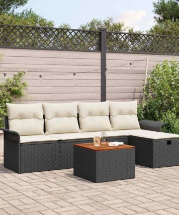 Dieses 6-teilige Garten Sofa Set vereint Stil und Funktion, perfekt für Entspannung und Naturgenuss. Aus schwarzem Poly-Rattan mit cremeweißen Kissen, fügt es sich ideal in Terrassen, Balkone oder Gärten ein. Modulares Design: Lässt sich spielend leicht umstellen, um verschiedenen Außenbereichen und Versammlungen gerecht zu werden. Änder das Setup, wie du magst, egal ob es eine große Feier oder ein ruhiger Abend sein soll. Wetterfeste Materialien: Das Poly-Rattan ist so designt, dass es den wetterlichen Bedingungen standhält, und die Stoffkissen sind farbecht, was sicherstellt, dass du ein langlebiges, pflegeleichtes Set hast. Handgewebtes Finish: Jedes Stück hat einen einzigartigen handgewebten Look, der nicht nur den Stil erhöht, sondern auch die Haltbarkeit steigert. Diese Handwerkskunst bringt ein wenig Flair und Raffinesse in deinen Außenbereich. Verstellbare Füße: Kommen mit Fußanpassungen für Stabilität auf unebenem Boden, was ein komfortables und ebenes Erlebnis schafft. Ideal für Gärten, Terrassen oder Balkone. Große Sitzkapazität: Platz für fünf Personen, was es perfekt für Familientreffen, Feiern oder einfach für einen entspannten Nachmittag mit Freunden macht.