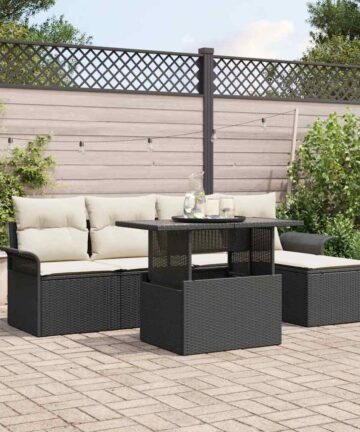 Dieses Garten Sofa Set ist ein tolles Möbelstück für Sitzgelegenheiten im Freien. Perfekt für Zusammenkünfte oder entspannte Abende. Mit viel Platz kombiniert es Komfort und Stil und ist ideal, um die Natur zu genießen – egal ob auf dem Balkon, der Terrasse oder im Garten. Das Sofa bietet Platz für fünf Personen und genug Raum für Familie und Freunde bei Treffen. Genieße die Natur stilvoll mit Platzangebot, das Komfort und Stil vereint. Dieses Set lässt sich einfach an unterschiedliche Außen-Stile anpassen und ist somit eine Top-Wahl für jeden, der seinen Garten oder seine Terrasse aufwerten möchte. Einfache Pflege ist ein Plus, mit abnehmbaren Kissen, die mit Reißverschlüssen ausgestattet sind, sodass du sie leicht reinigen und den Komfort und Stil frisch halten kannst. Das Set ist stabil und hat einen pulverbeschichteten Stahlrahmen und eine hochwertige Poly-Rattan-Oberfläche, die dafür sorgt, dass es in deinem Außenbereich jahrelang gut aussieht. Die Maße bieten Flexibilität und ausreichend Raum für Essenspausen oder Relaxen, und zeigen ihre Vielseitigkeit in deinem Außenbereich.