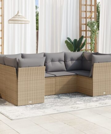 Be the first to review “6-tlg. Garten-Sofagarnitur mit Kissen Beige Poly Rattan”