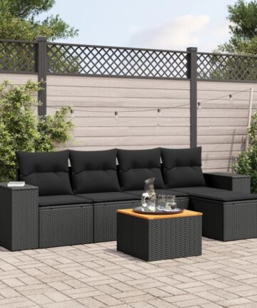 Diese Garten-Sofagarnitur ist die perfekte Ergänzung zu deinem Garten, deiner Terrasse oder deinem Innenhof. Sie bietet einen bequemen und einladenden Platz, um mit Familie und Freunden zu plaudern oder dich einfach nur zu entspannen und das Leben im Freien zu genießen. Langlebiges Material: PE-Rattan, auch als Poly Rattan bekannt, ist ein robustes, pflegeleichtes synthetisches Material, das die Optik von natürlichem Rattan aufweist. Es kennzeichnet sich durch ein geringes Eigengewicht und lässt sich einfach reinigen. Aufgrund seiner Haltbarkeit und Witterungsbeständigkeit wird es häufig bei der Herstellung von Gartenmöbeln verwendet.Stabile und pflegeleichte Tischplatte: Dieser Gartentisch besitzt eine Tischplatte aus Akazienholz, die robust und langlebig ist und sich leicht mit einem feuchten Tuch reinigen lässt. Stauraum mit wasserfestem Beutel: Jedes Gartensofa verfügt über ein Staufach unter der Sitzfläche, das mit einem wasserfesten Beutel zur Aufbewahrung von Kissen, Spielzeug und anderen Gegenständen versehen ist. Die Kissen sind mit Bezügen versehen und lassen sich mit Klettverschlüssen fest und sicher an den Sofas befestigen.Bequemes Sitzerlebnis: Dieser Gartensessel mit dick gepolsterten Kissen bietet ein angenehmes Sitzgefühl.Modulares Design: Dank des modularen Designs lassen sich die Gartenmöbel völlig flexibel und einfach umstellen, um deinen Außenbereich ganz individuell zu gestalten. Gut zu wissen:Wir empfehlen dir, deine Gartenmöbel mit einer wasserdichten Hülle zu schützen, um lange Zeit eine ansprechende Optik aufzuweisen.