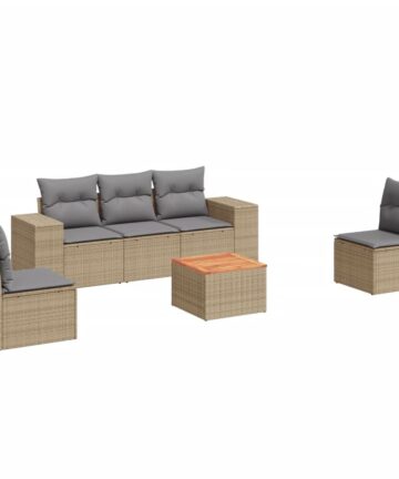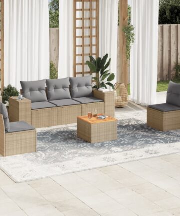 Diese Garten-Sofagarnitur ist die perfekte Ergänzung zu deinem Garten, deiner Terrasse oder deinem Innenhof. Sie bietet einen bequemen und einladenden Platz, um mit Familie und Freunden zu plaudern oder dich einfach nur zu entspannen und das Leben im Freien zu genießen. Langlebiges Material: PE-Rattan, auch als Poly Rattan bekannt, ist ein robustes, pflegeleichtes synthetisches Material, das die Optik von natürlichem Rattan aufweist. Es kennzeichnet sich durch ein geringes Eigengewicht und lässt sich einfach reinigen. Aufgrund seiner Haltbarkeit und Witterungsbeständigkeit wird es häufig bei der Herstellung von Gartenmöbeln verwendet.Stabile und pflegeleichte Tischplatte: Dieser Gartentisch besitzt eine Tischplatte aus Akazienholz, die robust und langlebig ist und sich leicht mit einem feuchten Tuch reinigen lässt. Bequemes Sitzerlebnis: Dieser Gartensessel mit dick gepolsterten Kissen bietet ein angenehmes Sitzgefühl. Abnehmbarer und waschbarer Bezug: Diese Sitzkissen verfügen über abnehmbare Bezüge für einfaches Waschen und Pflegen.Modulares Design: Dank des modularen Designs lassen sich die Gartenmöbel völlig flexibel und einfach umstellen, um deinen Außenbereich ganz individuell zu gestalten. Gut zu wissen:Wir empfehlen dir, deine Gartenmöbel mit einer wasserdichten Hülle zu schützen, um lange Zeit eine ansprechende Optik aufzuweisen.