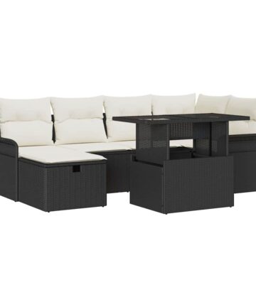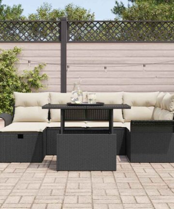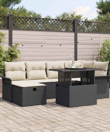 Dieses 7-teilige Garten-Sofa-Set vereint Komfort und Funktionalität, um deine Innen- und Außenbereiche aufzuwerten. Mit seinem modernen Look ist es perfekt für Familie und Freunde und macht deinen Balkon, Wintergarten oder Garten zu einem einladenden Platz für bis zu sechs Personen. Das schicke Rattan und die bequemen Kissen schaffen einen tollen Ort für entspannte Abende oder lebhafte Zusammenkünfte. Vielseitiges Design: Dieses Sofa-Set kann drinnen und draußen genutzt werden und bietet stilvolle Sitzgelegenheiten, wo immer du es brauchst. Die modernen Linien und Texturen passen zu jeder Einrichtung. Stauraum-Funktionalität: Jeder Sitz hat ausreichend Platz für Outdoor-Sachen oder Decken, damit alles schön ordentlich bleibt. Bequeme Kissen: Die weichen Kissen haben abnehmbare Bezüge, die leicht zu reinigen und super bequem sind. Robuste Materialien: Aus wasserdichtem Rattan und Aluminium gefertigt, ist dieses Set für die Ewigkeit gebaut und widersteht jedem Wetter. Großzügige Sitzmöglichkeiten: Platz für bis zu sechs Personen, ideal für Treffen und entspannte Zeiten mit der Familie.