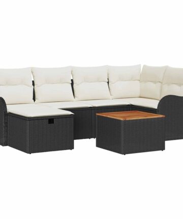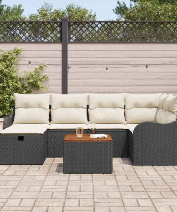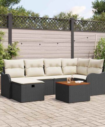 Das 7-teilige Garten Sofa Set mit Kissen von vereint Komfort und Stil, perfekt zum Entspannen im Freien. Mit seinem flexiblen Design bietet das Set Platz für bis zu vier Personen und ist ein toller Ort für Freunde und Familie, um sich zu treffen, zu plaudern und die Zeit draußen zu genießen. Dieses Sofa Set kommt mit dicken Kissen, die bestmöglichen Komfort bieten und es dir und deinen Freunden ermöglichen, stilvoll an sonnigen Tagen oder kühlen Abenden zu relaxen. Das modulares Design erlaubt dir, alles so umzustellen, wie du es brauchst, damit du den Platz hast, den du willst, ohne dabei auf den Look zu verzichten. Hergestellt aus UV- und wasserbeständigen Materialien, ist dieses Garten Sofa Set eine dauerhafte Investition, die du viele Jahre schätzen wirst. Der moderne Stil mit strukturiertem Finish und schlankem schwarzen Rahmen gibt deinen Terrassen, Balkonen oder Gärten einen schicken Touch und lässt den Gesamtbereich stilvoll aussehen. Dieses vielseitige Möbelstück ist ideal für jeden Außenbereich – perfekt für Grillabende, Familientreffen oder einfach zum Chillen am Abend.