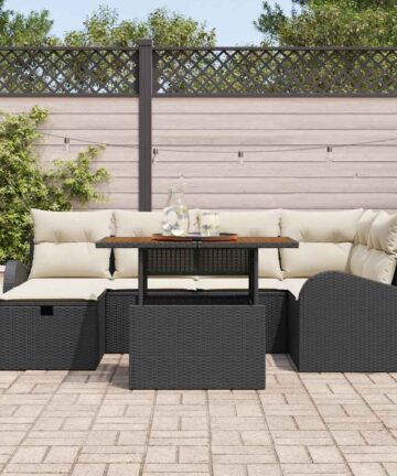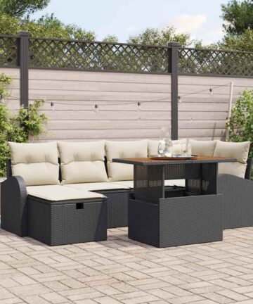 Das Garten Sofaset ist ideal für gemütliche Sitzgelegenheiten im Freien und besticht durch sein modernes Design. Perfekt zum Entspannen, ist es genau das Richtige für jeden Außenbereich, für alle, die Wert auf bequeme und stilvolle Sitzmöglichkeiten legen. Modulares Design: Das flexible Design des Sets ermöglicht dir, es ganz nach deinem Gusto zu gestalten – ideal für entspannte Chilleinheiten. Wetterbeständig: Aus UV-beständigen Materialien gebaut, kann dieses Garten Sofa auch bei schlechtem Wetter genutzt werden und sieht dabei gut aus. Handgewebte Textur: Das aufwendige handgewebte Design bringt einen stilvollen Akzent in deine Outdoor-Deko. Einfach zu pflegen: Die Bezüge sind abnehmbar, was dir die Reinigung der Kissen super einfach macht, damit dein Garten Sofa immer frisch aussieht. Geräumige Sitzmöglichkeiten: Platz für bis zu sechs Personen – ideal für Familientreffen oder entspannte Stunden im Garten mit Freunden.