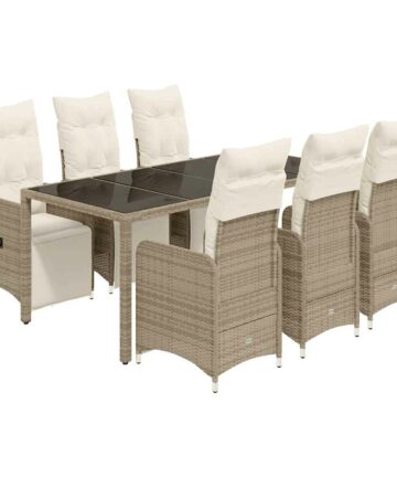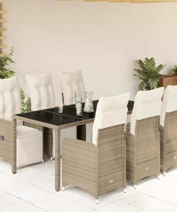 Genieße einen Kaffee oder unterhalte dich mit deiner Familie und deinen Freunden im Garten, Hinterhof oder auf dem Balkon mit diesem bequemen Bistro-Set! Langlebiges Material: PE-Rattan, auch als Poly Rattan bekannt, ist ein robustes, pflegeleichtes synthetisches Material, das die Optik von natürlichem Rattan aufweist. Es kennzeichnet sich durch ein geringes Eigengewicht und lässt sich einfach reinigen. Aufgrund seiner Haltbarkeit und Witterungsbeständigkeit wird es häufig bei der Herstellung von Gartenmöbeln verwendet.Verstellbare Rückenlehne und verstellbares Fußteil: Der Gartensessel ist mit einem Griff versehen. So kannst du die Rückenlehne und das Fußteil durch Ziehen des Griffs verstellen und sie danach schnell wieder in ihre ursprüngliche Position bringen.Bequemes Sitzerlebnis: Dieser Gartensessel mit dick gepolsterten Kissen bietet ein angenehmes Sitzgefühl.Abnehmbarer und waschbarer Bezug: Die Sitzkissen verfügen über abnehmbare Bezüge, die sich ganz einfach waschen und reinigen lassen. Dank der Klappen an der Rückseite können die Rückenkissen ganz einfach an den Rückenlehnen befestigt werden.Tischplatte aus Glas: Die Tischplatte des Gartentisches besteht aus starkem und langlebigem Hartglas, sodass sie leicht mit einem feuchten Tuch gereinigt werden kann und deinem Außenbereich einen Hauch von Eleganz verleiht. Gut zu wissen:Wir empfehlen dir, deine Gartenmöbel mit einer wasserdichten Hülle zu schützen, um lange Zeit eine ansprechende Optik aufzuweisen.