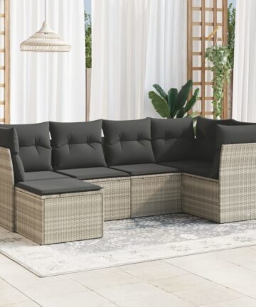 Diese Garten-Sofagarnitur ist die perfekte Ergänzung zu deinem Garten, deiner Terrasse oder deinem Innenhof. Sie bietet einen bequemen und einladenden Platz, um mit Familie und Freunden zu plaudern oder dich einfach nur zu entspannen und das Leben im Freien zu genießen. Langlebiges Material: PE-Rattan, auch als Poly Rattan bekannt, ist ein robustes, pflegeleichtes synthetisches Material, das die Optik von natürlichem Rattan aufweist. Es kennzeichnet sich durch ein geringes Eigengewicht und lässt sich einfach reinigen. Aufgrund seiner Haltbarkeit und Witterungsbeständigkeit wird es häufig bei der Herstellung von Gartenmöbeln verwendet.Stauraum mit wasserfestem Beutel: Jedes Gartensofa verfügt über ein Staufach unter der Sitzfläche, das mit einem wasserfesten Beutel zur Aufbewahrung von Kissen, Spielzeug und anderen Gegenständen versehen ist. Die Kissen sind mit Bezügen versehen und lassen sich mit Klettverschlüssen fest und sicher an den Sofas befestigen.Tischplatte aus Glas: Die Tischplatte des Gartentisches besteht aus starkem und langlebigem Hartglas, sodass sie leicht mit einem feuchten Tuch gereinigt werden kann und deinem Außenbereich einen Hauch von Eleganz verleiht.Abnehmbarer und waschbarer Bezug: Diese Sitzkissen verfügen über abnehmbare Bezüge für einfaches Waschen und Pflegen.Modulares Design: Dank des modularen Designs lassen sich die Gartenmöbel völlig flexibel und einfach umstellen, um deinen Außenbereich ganz individuell zu gestalten. Gut zu wissen:Wir empfehlen dir, deine Gartenmöbel mit einer wasserdichten Hülle zu schützen, um lange Zeit eine ansprechende Optik aufzuweisen.