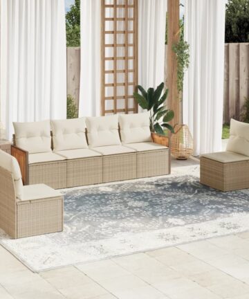 Diese Garten-Sofagarnitur ist die perfekte Ergänzung zu deinem Garten, deiner Terrasse oder deinem Innenhof. Sie bietet einen bequemen und einladenden Platz, um mit Familie und Freunden zu plaudern oder dich einfach nur zu entspannen und das Leben im Freien zu genießen. Langlebiges Material: PE-Rattan, auch als Poly Rattan bekannt, ist ein robustes, pflegeleichtes synthetisches Material, das die Optik von natürlichem Rattan aufweist. Es kennzeichnet sich durch ein geringes Eigengewicht und lässt sich einfach reinigen. Aufgrund seiner Haltbarkeit und Witterungsbeständigkeit wird es häufig bei der Herstellung von Gartenmöbeln verwendet.Stauraum mit wasserfestem Beutel: Das Gartensofa verfügen über ein Staufach unter der Sitzfläche, das mit einem wasserfesten Beutel zur Aufbewahrung von Kissen, Spielzeug und anderen Gegenständen versehen ist. Der Innenbeutel lässt sich mit Klettverschlüssen sicher und stabil an den Gartenmöbeln befestigen.Stabile und pflegeleichte Tischplatte: Dieser Gartentisch besitzt eine Tischplatte aus Akazienholz, die robust und langlebig ist und sich leicht mit einem feuchten Tuch reinigen lässt.Abnehmbarer und waschbarer Bezug: Diese Sitzkissen verfügen über abnehmbare Bezüge für einfaches Waschen und Pflegen.Modulares Design: Dank des modularen Designs lassen sich die Gartenmöbel völlig flexibel und einfach umstellen, um deinen Außenbereich ganz individuell zu gestalten. Gut zu wissen:Wir empfehlen dir, deine Gartenmöbel mit einer wasserdichten Hülle zu schützen, um lange Zeit eine ansprechende Optik aufzuweisen.